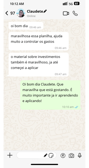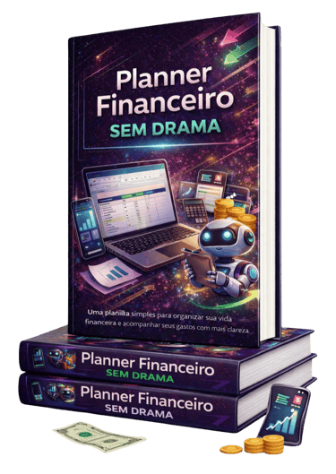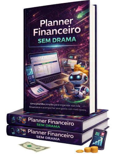 Com ele, você vai aprender a se organizar, criar reserva, entender os principais termos das finanças, dar os primeiros passos nos investimentos, conhecer ideias de renda extra com a internet e usar uma planilha prática no Google Sheets para acompanhar tudo no dia a dia.