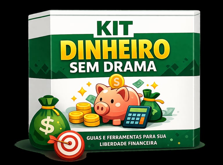 O Kit Dinheiro Sem Drama é um pacote com 5 materiais práticos para ajudar você a organizar sua vida financeira, entender melhor o seu dinheiro e começar a agir com mais clareza e segurança.
