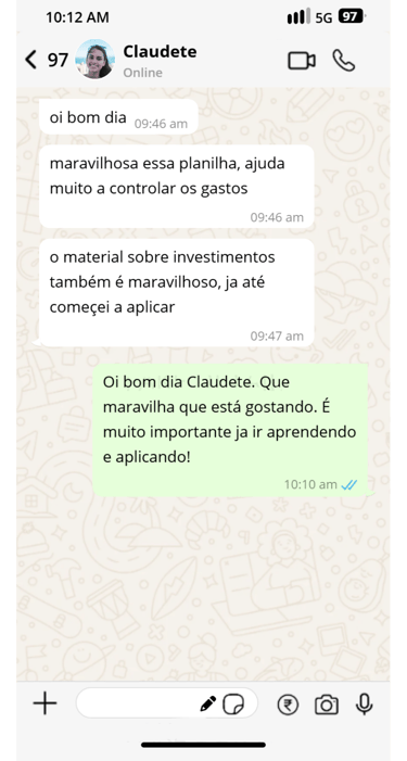 Com ele, você vai aprender a se organizar, criar reserva, entender os principais termos das finanças, dar os primeiros passos nos investimentos, conhecer ideias de renda extra com a internet e usar uma planilha prática no Google Sheets para acompanhar tudo no dia a dia.